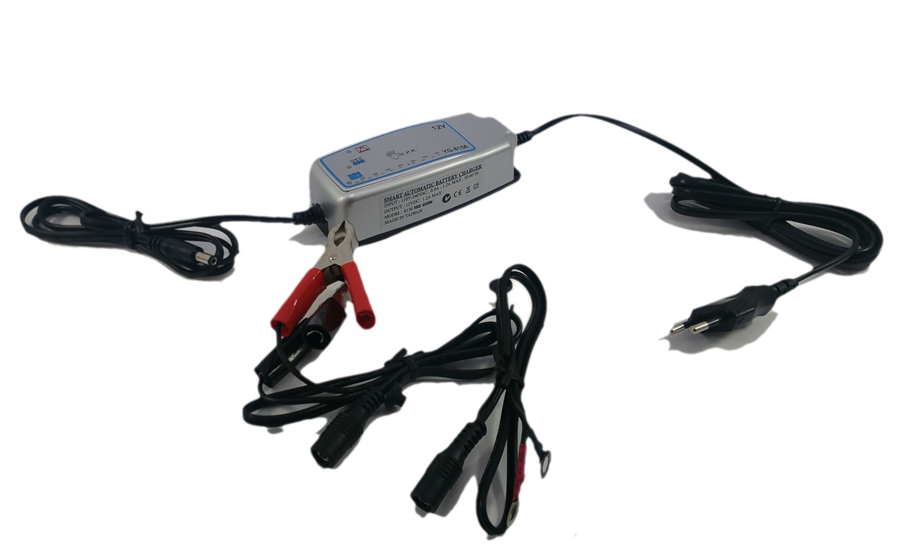Chargeur automatique universel YG-8156. Entrée: 110V-220V Sortie: 12VDC, 1,2A max.