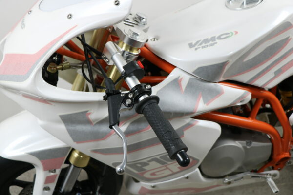 Disponible en version boite 4 vitesses inversées ou Automatique , la mini-moto est équipée comme les grandes , beaucoup de pièces performances permettant d’adapter les performances au niveau et à l’évolution de l’enfant. Les freins efficaces, la poignée d’accélérateur souple et les pneus larges slick garantissent un maximum de sécurité sur piste comme en compétition.