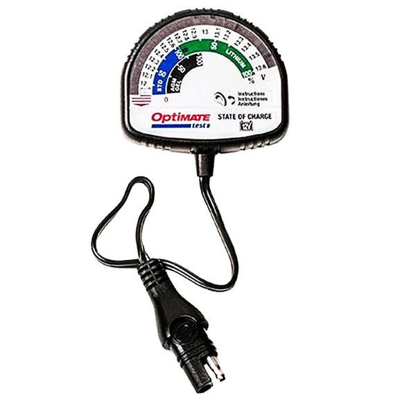 Le circuit avec microprocesseur du testeur de batterie OptiMate utilise une très faible quantité d’électricité tirée de la batterie elle-même afin de déterminer et d’afficher l’état de la batterie. Les instructions sont simples et indiquées sur le panneau arrière du testeur.